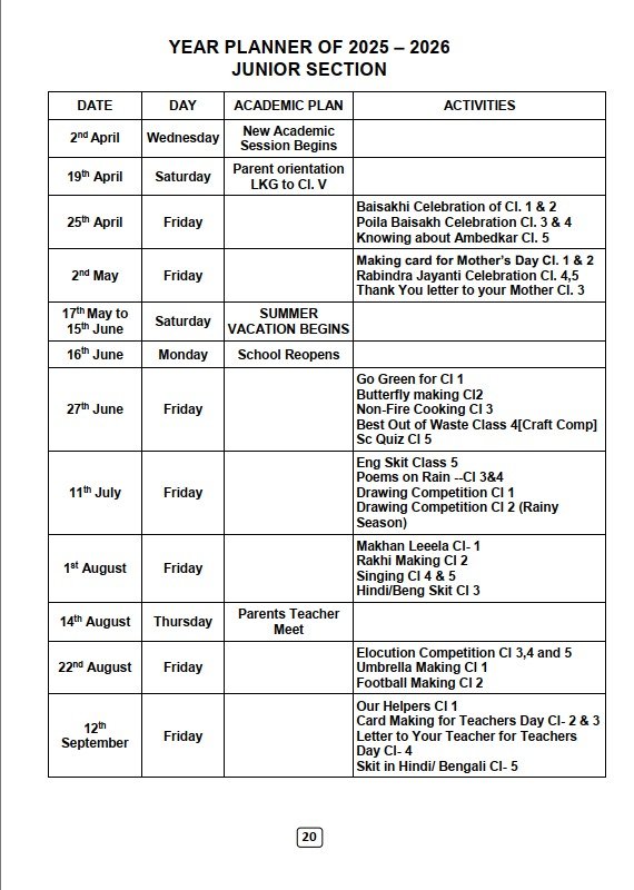 YEAR PLANNER 2025-2026: JUNIOR SECTION