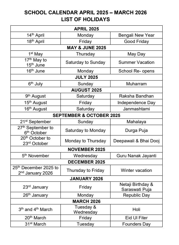 Welcome to the new session 2025-2026. Holiday List & Year Planner of the new session will be uploaded soon. !!