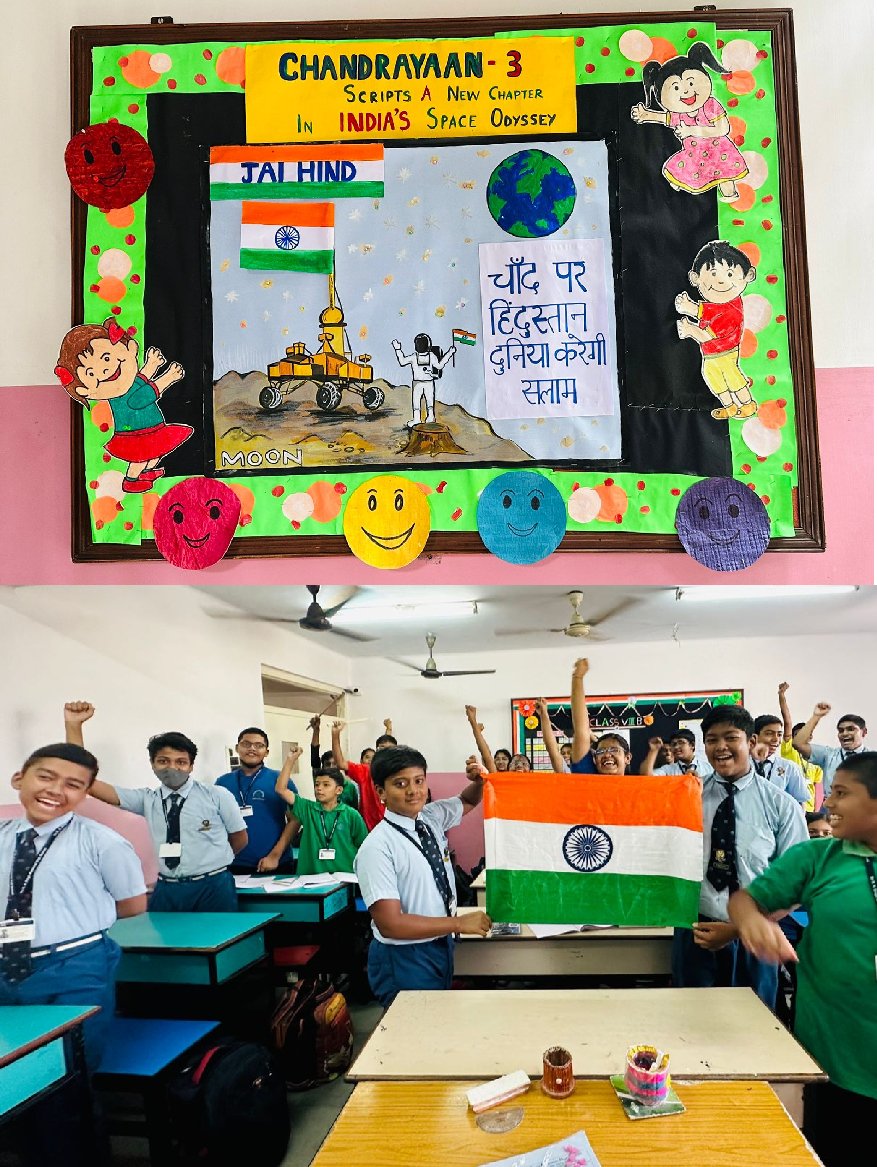 Students celebrating the success of Chandrayaan 3.