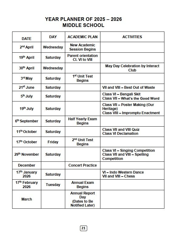 YEAR PLANNER 2025-2026: JUNIOR SECTION