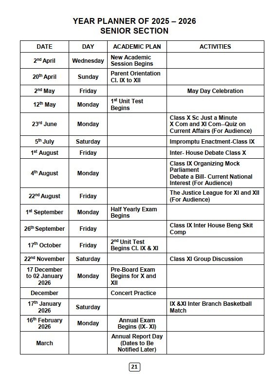 YEAR PLANNER 2025-2026: SENIOR SECTION
